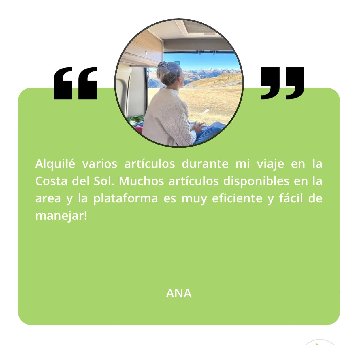 Renda is a goods rental service created especially for the needs of tourists. Browse the products and add the goods you want to rent to the shopping cart. The rental time is indicated before proceeding to checkout in the special instructions section of the order. Rental products are collected from our warehouse in Fuengirola, (C./Alora 25b) or you can inquire about transportation with us. We are happy to answer all questions.