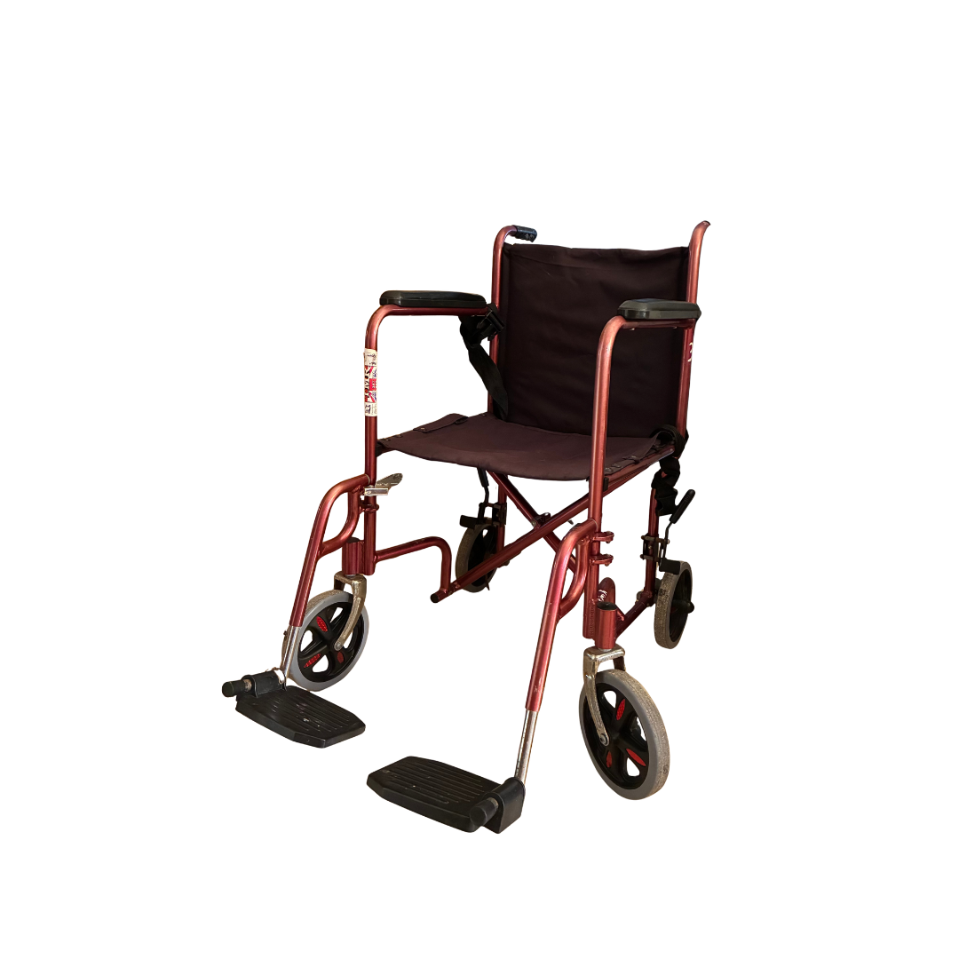 Työnnettävä pyörätuoli, eli tuolia ei voi itse rullata.